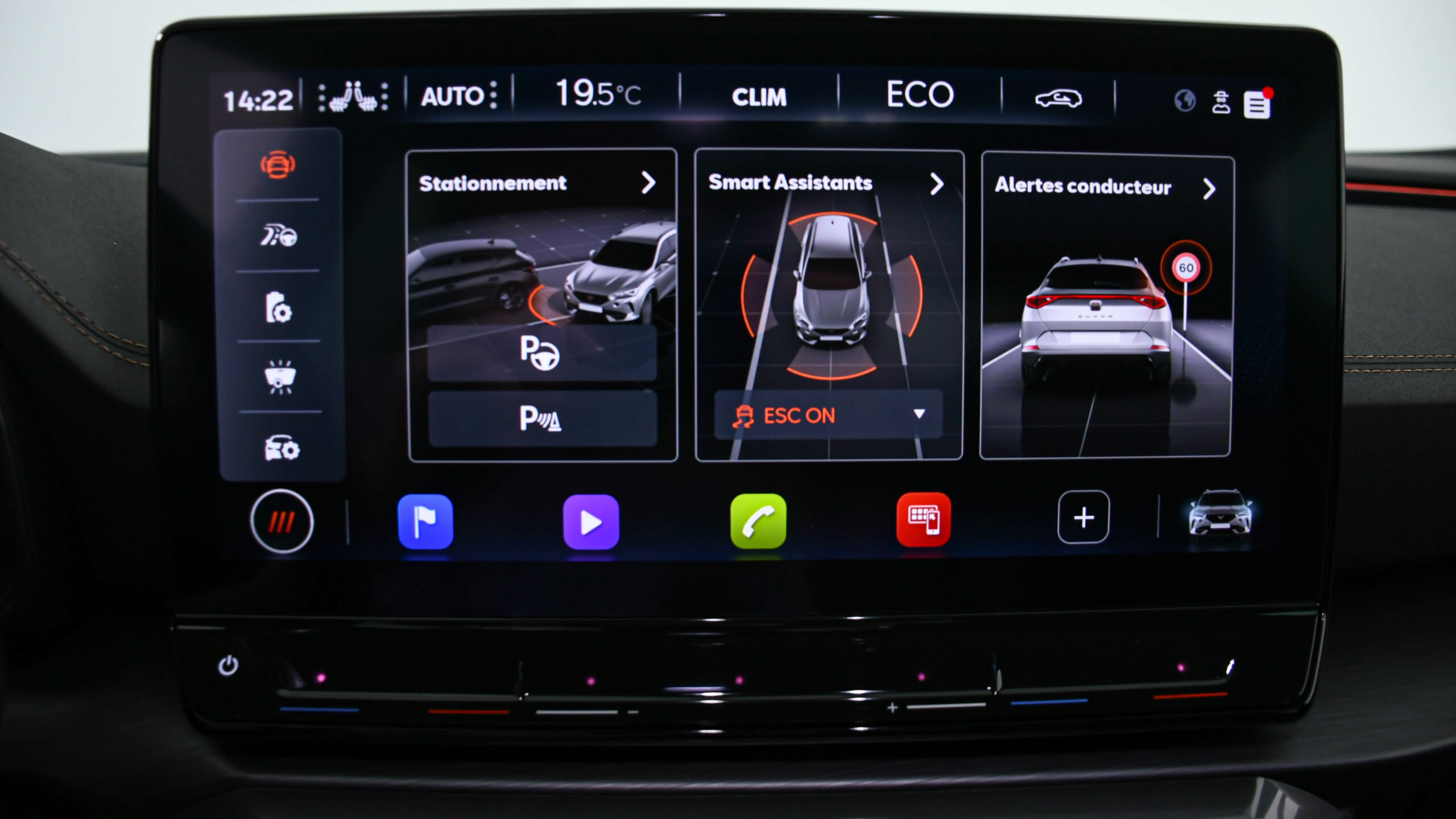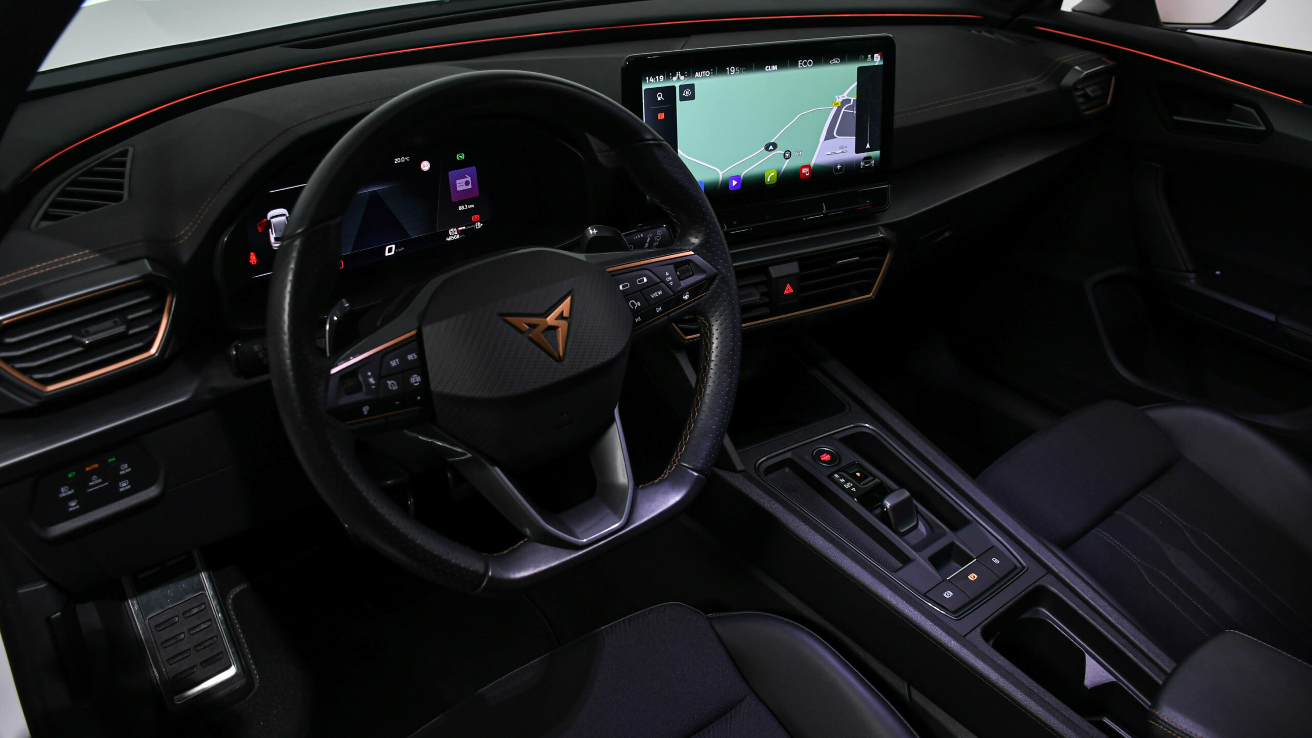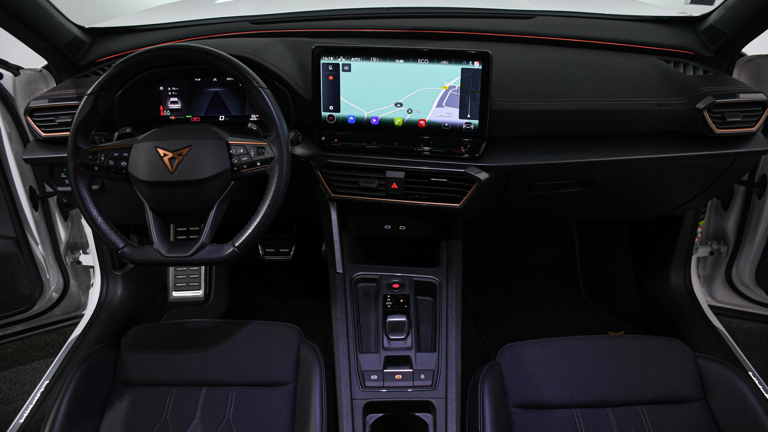 CUPRA Formentor 1.4 E-HYBRID 245 CV ACC DCC CAMERA PARCK ASSIST SIDE ASSIST LINE ASSIST VIRTUAL COCKPIT GPS CARGEUR INDUCTION AMBIANCE LUMINEUSE FEUX FULL LED JANTES ALU 19′ 1ER MAIN