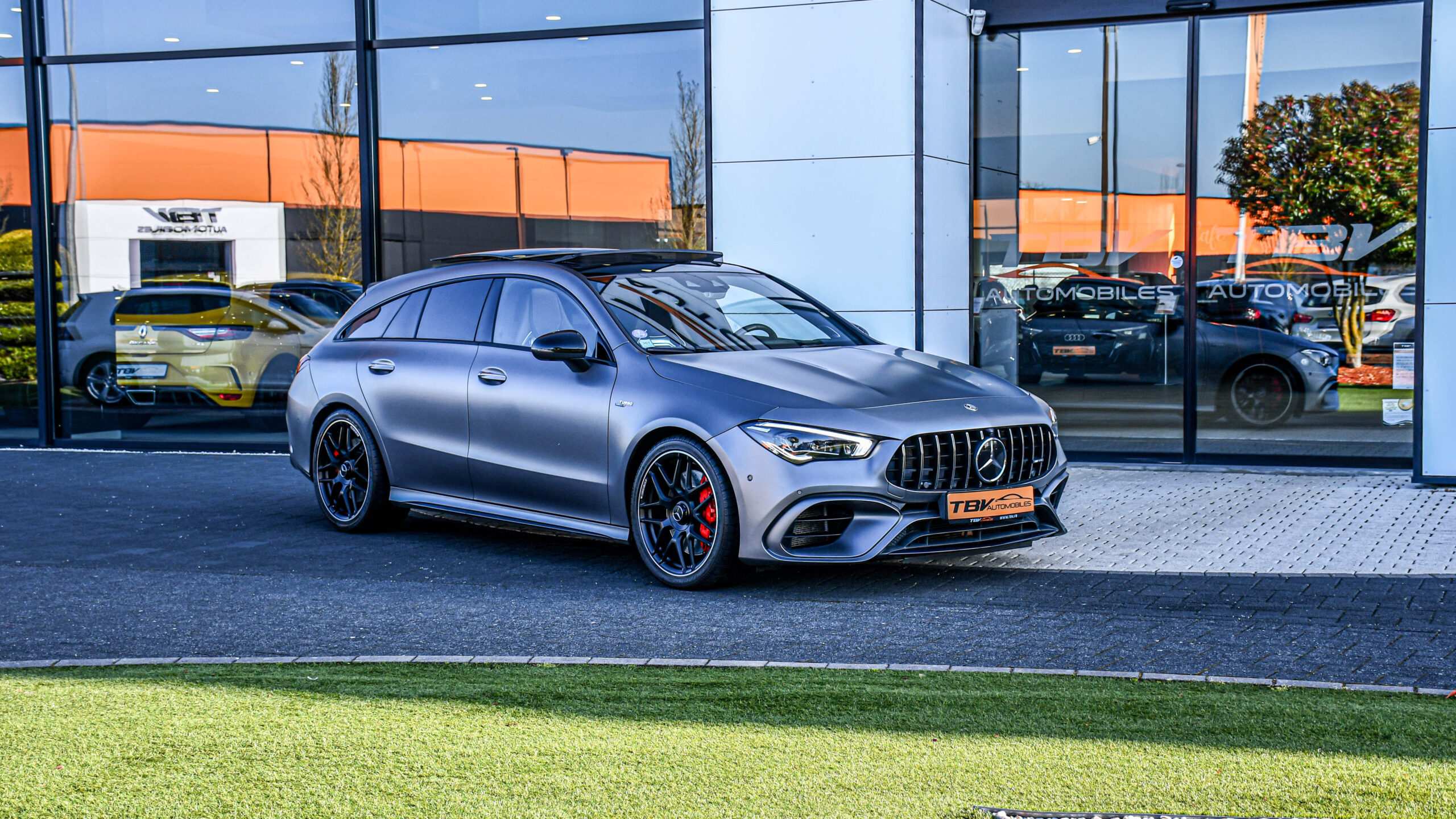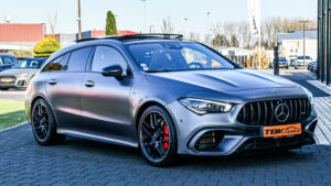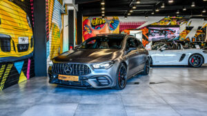 MERCEDES CLA 45 AMG S 421 CH 4MATIC+ GRIS MAGNO HUD TOIT PANO ACC CAM 360° RIDE CONTROLE ECHAPP AMG SIEGES AMG — SUPERBE CONFIGURATION ! PAS DE MALUS